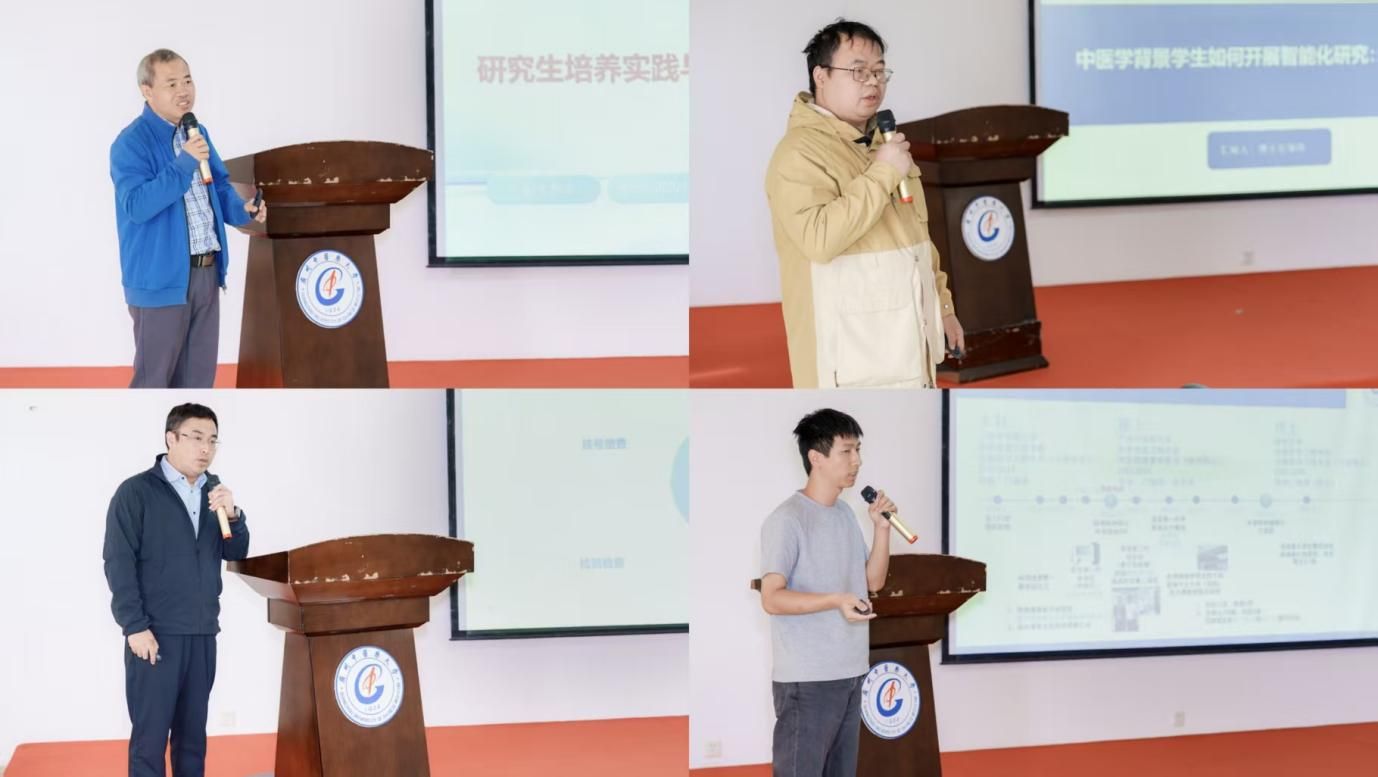 在学科人才培养交流环节,英国be365官网曹东教授以《立德树人精耕细作:公司产品实践与思考》为题,从育人理念、培养模式、实践探索等方面分享公司产品经验;英国be365官网第一附属医院信息科郑泽南副科长作《医院信息化背景下骨干人才培养思考》,结合医院信息化建设实际提出人才培养建议;邹昆博士生分享《中医学背景员工如何开展智能化研究:经验探索》,为跨背景员工开展智能化研究提供经验借鉴;林煌博研究生带来《从广中医到清华:我的跨学科培养之路》,以自身经历展现跨学科培养对个人学术成长的推动作用。