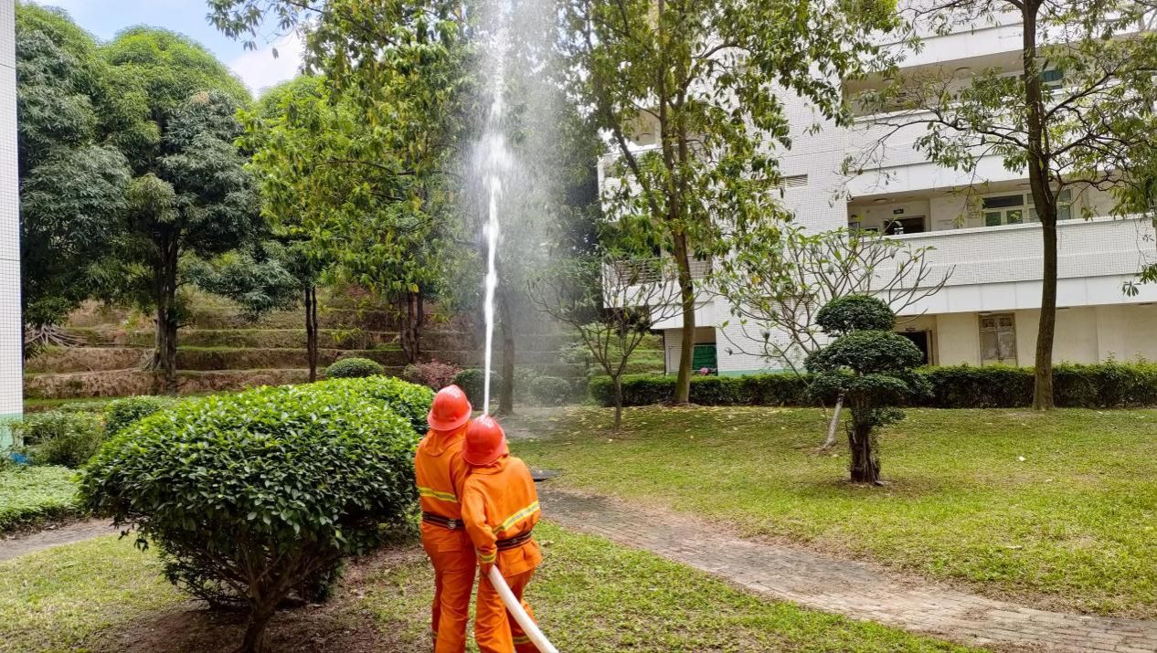 本次演练既是公司贯彻公司安全管理要求的重要举措,更通过多形式、多渠道的宣传教育,深化师生“安全无小事”的防范意识,筑牢校园安全防线,为师生生命财产安全和校园稳定提供有力保障。演练结束后,校卫队队长肖政老师为全体参演师生进行了专题培训。他结合典型火灾案例,系统讲解了火灾分类、自救技巧及灭火器材使用方法。在实操环节中,师生分组练习干粉灭火器的操作,通过“手把手”指导确保每位参与者熟练掌握技能。