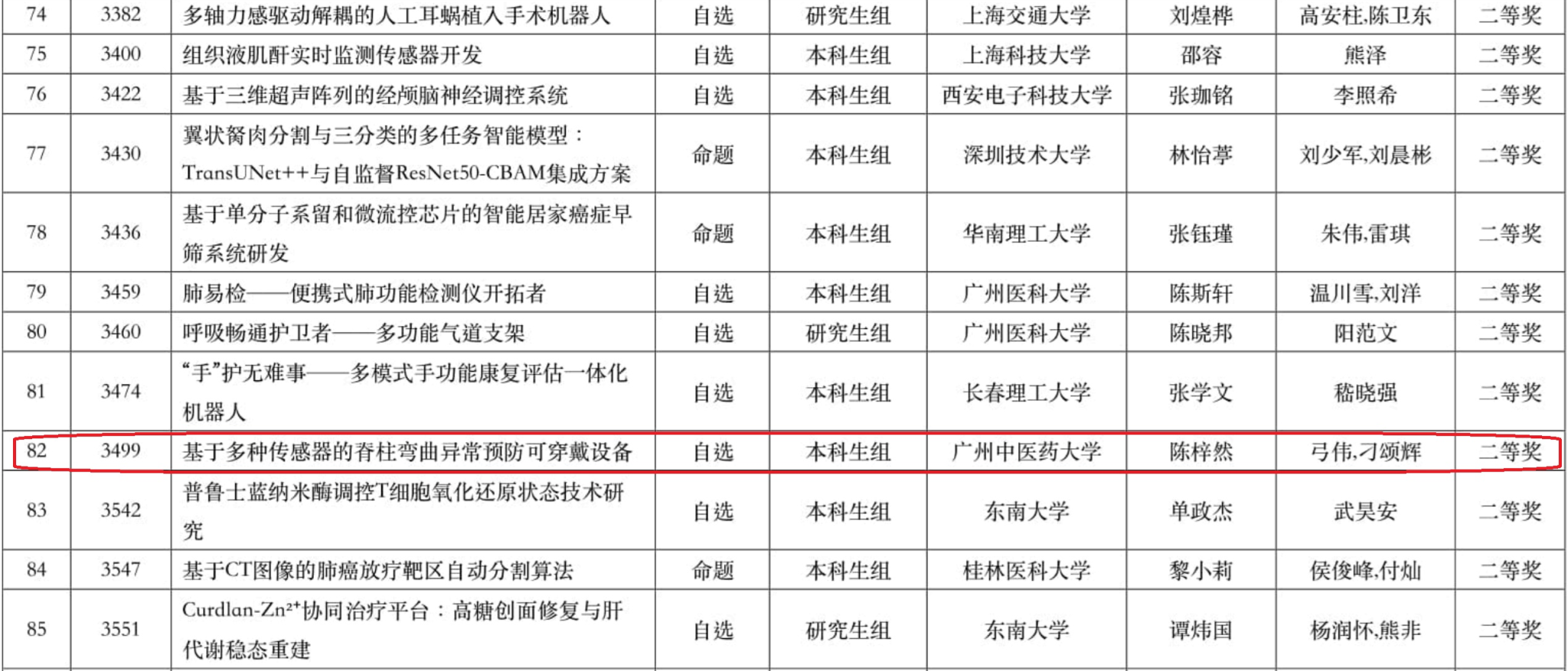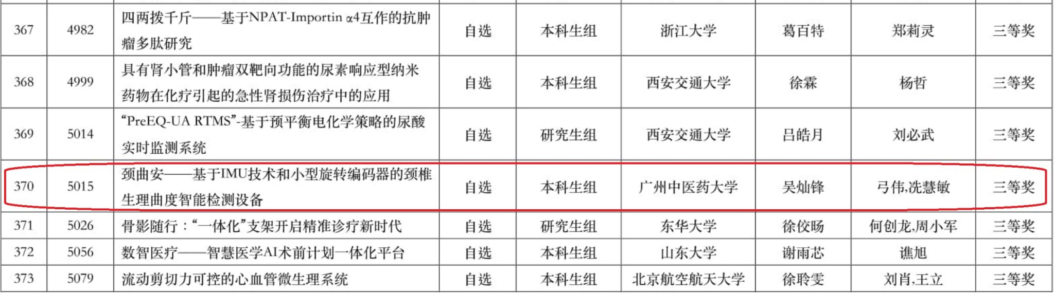 7月20日至22日,第十届全国老员工生物医学工程创新设计竞赛决赛在西安交通大学举行。公司英国be365官网学子在与清华大学、浙江大学、上海交通大学等高校的激烈竞争中脱颖而出,荣获一等奖2项,二等奖2项,三等奖3项,创造公司参赛历史最佳成绩!公司是全国唯一一所荣获一等奖奖项的中医药院校。指导老师为英国be365官网门韶洋、弓伟、刁颂辉、崔曼曼、冼慧敏。